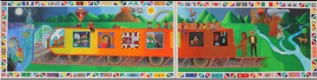 Este tren entra por un túnel que, a diferencia de otros, no es oscuro ni acechante. Este transito es luminoso, casi transparente. Las paredes interiores del túnel están decoradas con texto. La palabra Fe escrita en muchos idiomas trae belleza, esperanza, la posibilidad de un futuro posible, menos doloroso.