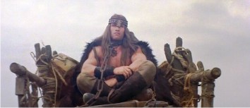 Al adolecer de la casuística ética de esclavos provista por una religión o una filosofía atávica nuestro guerrero poseía mayores oportunidades de conseguir imponer su venganza contra Thulsa Doom: por ejemplo, no tiene inconveniente alguno en unirse a ladrones o practicar hechicería para lograr sus objetivos. Nuestro personaje, puede vivir a través de toda la Era Hiboria sin cargar ideales falsos que, de acuerdo con el aristocratismo de espada de Nietzsche, lo hubiesen disminuido física y espiritualmente, le hubieran extraído su salud. Se trata, por esto, de un protagonista muy diferente a otros filmes del género "Swords&Sorcery" o del mitológico-fantástico, estamos ante un individuo plenamente nietzscheano. No estamos pues ante un Perseo de Furia de Titanes (Desmond Davis, 1981) quien es motivado a luchar contra múltiples peligros por su amor hacia Andrómeda y para ajusticiar las tropelías de Calibos; ni mucho menos estamos ante las aventuras del héroe He-Man que sólo desea atrapar a los esbirros del ambicioso Skeletor (Masters of the Universe, Gary Goddard, 1987) porque es su “deber”. Además, existen otros héroes del mismo género que, aunque también amorales, palidecen ante la amoralidad y el pragmatismo de Conan: el ladrón Bek en Dioses de Egipto (Alex Proyas, 2016) es escéptico y burlón hacia los dioses pero, finalmente, ayuda al "bien" representado en Horus, aunque sea por el amor que le tiene a su damisela; otro ejemplo, los únicos guerreros en la serie para televisión Juego de Tronos (2011-) que tienen características del superhombre plenamente inmoral son Tywin Lannister y Jaime Lannister, sin embargo, el primero pierde su superioridad al intentar institucionalizarse para implantar una dinastía (pierde su salud y su vigor ahistóricos) y el segundo, conforme avanza la saga, adquiere ideales caballerescos con tintes muy (cristianamente) morales (otro individuo con características amorales nietzscheanas es Peter Baelish, sin embargo, éste no es un guerrero y además actúa mediante el engaño y la apariencia, algo muy poco perteneciente a las virtudes de la aristocracia de espada). Conan jamás se institucionaliza, jamás se vuelve sedentario (al menos no en la película de Millius), jamás se hace civilizado por completo (dejaría de ser bárbaro si lo hiciera), jamás se hace caballero de ideales románticos (llora a Valeria su amada muerta, la venga, pero hasta ahí), jamás pierde su vigor ni su voluntad de poder.