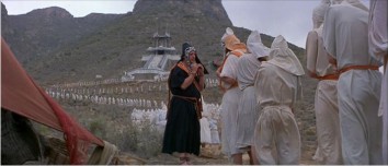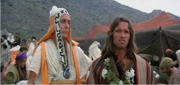 Veamos detenidamente, Conan recupera su libertad y luego muestra que adolece de ataduras espirituales, tanto religiosas como éticas. El guerrero de Milius prefiere el placer sobre el dolor, es decir, vemos que nunca rechaza lo voluptuoso; ni a las mujeres, ni a la comida en exceso, ni a las riquezas, como las rechazaría un buen monje. "Toda forma de placer y diversión fue permitida", dice el cronista de Conan sobre uno de sus festejos. “Se trata de una vida [como la que intentó vivir, y que siempre alabó, el propio Nietzsche] que no se vive en aras de una necesidad, sino a partir de una producción, una productividad que se convierte en el elemento central del modo de vida” (Frey, 2013:19). O, desde otro ángulo, ese hombre belicoso representado en el filme vive siempre en el mundo real, en contraste con el mundo ficticio metafísico-teológico en el que viven los hombres religiosos, y no aspira, ni desea, ni tal vez tampoco imagina, tales mundos ficticios metafísico-teológicos creados por filósofos y monjes pervertidos. Por eso dice el filósofo alemán “[…] no hay en mí nada de fundador de una religión. Las religiones son asuntos del populacho. He tenido necesidad de lavarme las manos después de haberme puesto en contacto con hombres religiosos…” (Nietzsche, 1987:196), lo mismo le sucede al Bárbaro del filme, desprecia las religiones (institucionalizadas), y aún va más allá, Conan tiene la necesidad no sólo de lavarse las manos sino de usarlas para aniquilar a los magos y a los religiosos. Porque para Nietzsche el hombre religioso moderno, específicamente el cristiano, denigra a la Humanidad, la lleva a una decadencia, por eso, nuestro filósofo dice no querer "creyentes", no buscar la beatificación ni la santidad (Nietzsche, 1987;197); de forma análoga Conan no desea seguidores creyentes ni mucho menos muestra anhelar una santidad.