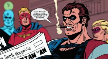 La lección de Watchmen exigió reconstruir y hacer una deconstrucción del cómic, mirarlo de manera distinta, sin situar a los superhéroes en “reinos fantásticos” (Spanokos, 2009, p. 44). Sentir su miseria resultaba inevitable. Cuando se indaga por las calidades de un miembro del grupo de los vigilantes, el personaje de Búho Nocturno II, uno de los enmascarados de Watchmen, refiriéndose a su compañero “El Comediante”, responde de la siguiente manera: “(…) es toda una mierda cubierta por un disfraz cegador y estrepitoso” (cap. VII, p. 8).