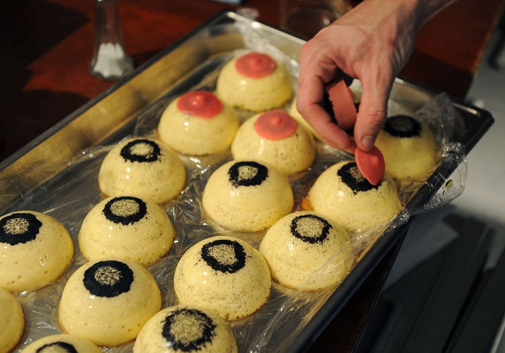 Las escenas del banquete son especialmente sugerentes, en particular los postres, una especialidad del chef, que recrea en su presentación la forma de un seno materno: