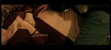 Podemos tomar como ejemplo la secuencia de la “separación” entre El Carnicero y La Patrona. En efecto, esta secuencia se desarrolla después de la proyección de una película pornográfica que El Carnicero va a ver, donde vuelve a afirmar, en sus pensamientos, su extrema masculinidad heterosexuada, lo que él piensa que es la virilidad, así como lo que piensa que lo define: “Mirá, si pudiera volver a empezar una existencia, debería hacer películas porno. Al menos ahí está claro. La gente que hace eso entendió perfectamente el sentido de nuestra especie. O nacés con una pija, y no sos útil a menos que te comportes como una buena pija dura que llena agujeros, o nacés con un agujero, y no serás útil a menos que te dejes llenar bien. Pero, en los dos casos, estás completamente solo. Sí, yo soy una pija. Es así. Soy una miserable pija. Y para que me respeten, tendré que estar siempre bien duro”.