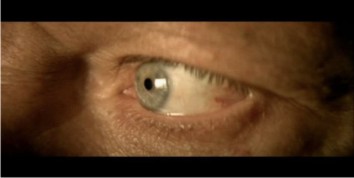 Toda la imagen se pone roja y luego un fundido encadenado nos vuelve a poner en la realidad, abriendo un primerísimo primer plano sobre el ojo del Carnicero, que mira a su hija.