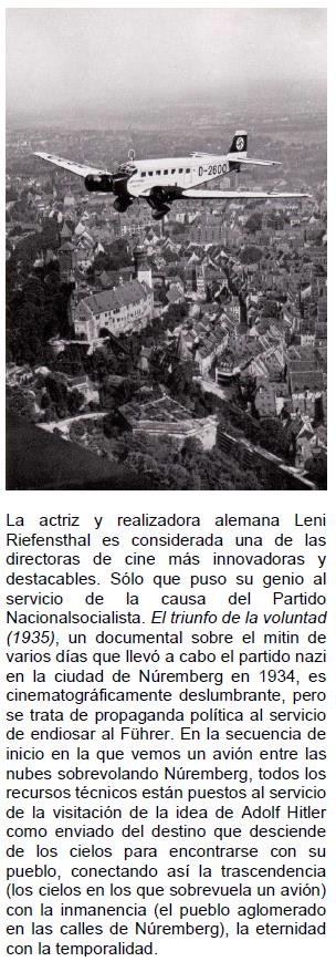 El problema del planteo de verdades estéticas irreductibles en el campo del cine, es que no queda claro hasta qué punto puede separarse la forma y el contenido, la idea y su pasaje, de modo tal de que lo estético quede divorciado, por ejemplo, de lo político. Justamente en un arte de masas que ha sido utilizado tanto en esa vía.