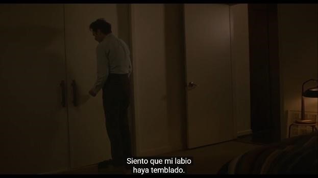 La elección de Jonze de recurrir a dos actrices distintas para la interpretación corporal y vocal del mismo personaje no es gratuita; marca un cambio sutil en la narrativa de Her que habría de ser percibida por el usuario-espectador: si bien este seguirá encontrando un punto de identificación con el narcisismo deseante de Theodore hasta el final de la película, entra en escena el discurso de amor de Samantha, y en específico, su demanda en voz, cuando señala: “tell me you love me” (Jonze, 2013b, p.75). Esta, sin embargo, no logra ser satisfecha, dado que Isabella, agente central de la fantasía, también es un sujeto deseante. Esta condición es revelada cuando Theodore distingue el rostro expectante y sensual de su amante sustituta, así como la manera en que sus labios “quivered” (Jonze, 2013b, p.76), gesto que alude a la represión de la voz y del placer que le pertenecen a Isabella, pero que le están vetados de expresar (véase Figura 9). En otras palabras, es el riesgo del ingreso de otra voz en gozo lo que interrumpe la fantasía de amor de Samantha al convertir a su reemplazo corporal de objeto a persona, fórmula simbólicamente contraria a lo que Theodore parece encontrar de deseable en su OS1. No sorprende, entonces, que el único momento en el que Isabella se subjetiviza es cuando habla tras la puerta de una habitación, es decir, cuando es voz descorporizada, pero comunicadora de afectos, tal como lo es Samantha (véase Figura 10).