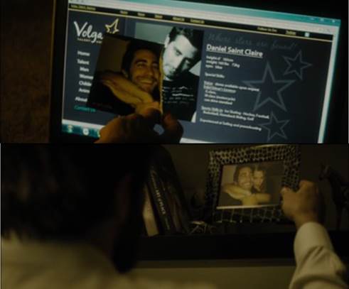 Por otro lado, la figura del doble subjetivo externo representada en los protagonistas se presenta con un tono siniestro e inquietante, como si el descubrimiento de que se trata de la misma persona fuera un acto aterrador para todos los personajes. En este sentido, las pistas de que Adam y Anthony son un mismo individuo se presentan sutilmente, en escenas oscuras ambientadas con sonidos bajos y violines chirriantes que aumentan la tensión. Un ejemplo de esto es la fotografía que usa el profesor para compararse con el actor mientras investiga sobre él. Esta fotografía rota aparecerá completa después en la casa del actor. Se trata de un detalle sutil que podría pasar desapercibido de no ser por la ambientación que motiva el tono siniestro.