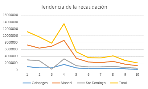 Las figuras 3 y 4 muestran la recaudación realizada en cada una de las provincias, el primero, expresado en porcentaje del total y, el segundo, la tendencia de los resultados obtenidos.