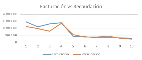 La figura 5 muestra las tendencias de los valores facturados versus los recaudados y la figura 6 correlaciona estas dos categorías de manera de poder inferir el comportamiento de la recaudación a partir del valor calculado.