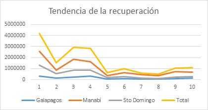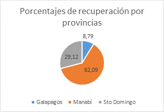 La estructura de la recuperación por provincias es similar que los indicadores anteriores analizados con valores para Manabí entre el 62 y 70 % del total. Por tanto, se puede decir que no existen diferencias significativas en la gestión de las provincias.