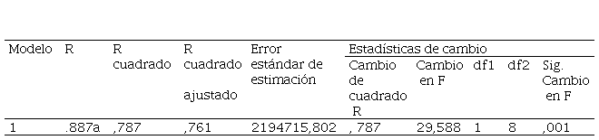 La segunda propuesta, resulta una ecuación de regresión que presenta como variable independiente la facturación y como dependiente la recaudación esperada. Valores superiores al esperado son muestras de una mejora en la gestión realizada. El resumen de los valores obtenidos, luego de la aplicación del software SPSS versión 22 se demuestra la normalidad de los datos con la aplicación de la prueba del Coeficiente Alfa. El resultado para el Coeficiente de Cronbach (α) es de 0,87 y R cuadrado igual a 0.787, significativamente correlacionado, al resultar valores superiores a 0.7.