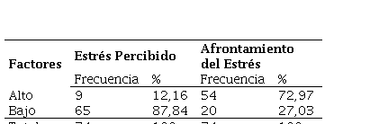 En relación con la escala de estrés percibido se obtuvieron los siguientes resultados: