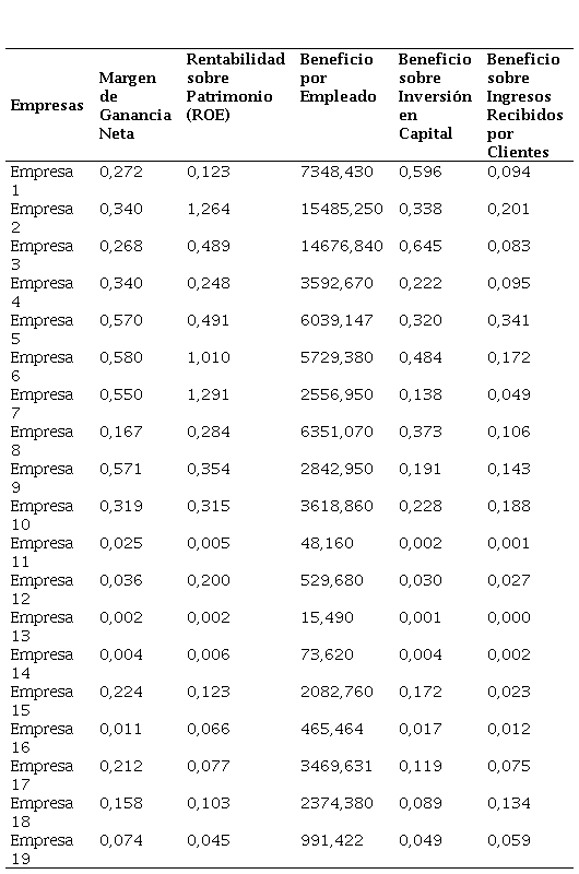 En el caso de la segunda variable representa el resultado del análisis de la Ganancia Neta en relación con los indicadores de la primera variable. Con los valores anteriores, se determinan los indicadores clave de desempeño que describen la rentabilidad alcanzada por la empresa en un periodo de tiempo (Tabla 2).