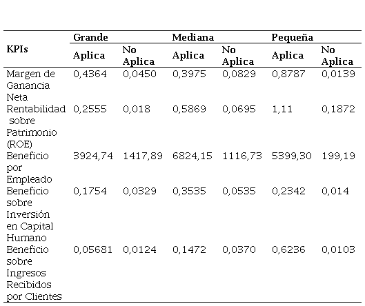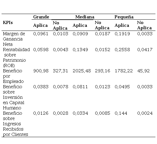 La recopilación de datos y su clasificación fue el aspecto fundamental de la investigación, la clasificación de datos según: el tamaño de la empresa y la aplicación de ISE permitió la comparación de los resultados obtenidos mediante el cálculo del valor promedio de cada uno de los indicadores de desempeño. (Tabla 3)