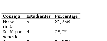 En la siguiente pregunta se le da a escoger entre un grupo de consejos para que los niños seleccionen cual le darían a la zorra. Los resultados se muestran en la tabla 3.