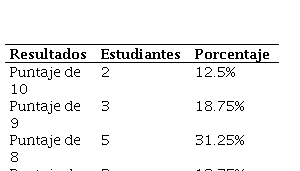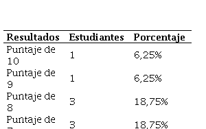 Los resultados mostraron que los estudiantes a pesar de realizar una lectura adecuada del texto presentaban dificultades en el nivel de comprensión que fue corroborado a partir de las pruebas diagnósticas, al asignarle una puntuación en los exámenes y darle una nota a cada estudiante los resultados alcanzados se muestran en la tabla 4.