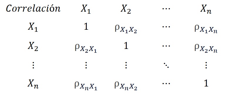 Por lo que la matriz de correlación queda de la siguiente forma.