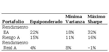 El trabajo considera tres tipos de portafolios (Equiponderado, Mínima Varianza y de Máximo Sharpe).