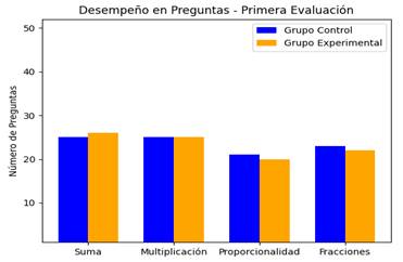 Al comparar el porcentaje de estudiantes en cada nivel de desempeño según las actividades evaluadas, se observa un patrón similar al descrito anteriormente: la mayoría de los estudiantes se encuentra en el nivel insuficiente. En particular, destaca el bajo rendimiento en la resolución de problemas que involucra el uso de proporcionalidad, donde aproximadamente el 59% de los estudiantes respondieron incorrectamente a las preguntas relacionadas. Además, es importante señalar que ningún estudiante del grupo experimental logró alcanzar el nivel satisfactorio en ninguna de las actividades.