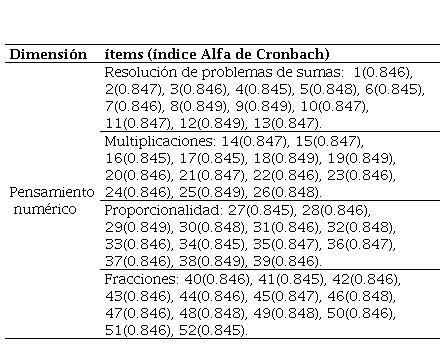 Para la recolección de información, se diseñó un test de 52 preguntas de opción múltiple para evaluar la resolución de ejercicios relacionados con el pensamiento numérico. Este instrumento elaborado específicamente para la investigación se centró en cálculos aritméticos y relaciones numéricas. Su diseño se basó en las directrices y ejes temáticos establecidos por el Plan Nacional para la Evaluación de los Aprendizajes (Planea), que evalúa el desempeño del Sistema Educativo Nacional en la educación obligatoria, incluyendo primaria, secundaria y educación media superior.