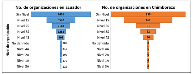 Las organizaciones clasificadas en el nivel 1S, que no requieren llevar contabilidad, son las más numerosas en Chimborazo. Sin embargo, la mayoría de las organizaciones EPS en esta provincia pertenece al sector asociativo, siguiendo una tendencia tanto local como nacional.