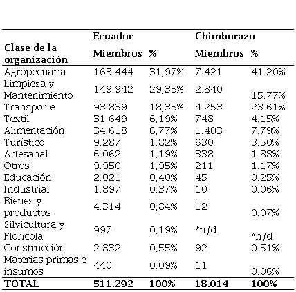 Con relación al número de miembros de estas organizaciones según las actividades que desarrollan, los resultados de la tabla 2 destacan que las actividades agropecuarias concentran la mayor proporción de socios, con un 41,20% del total en Chimborazo. Esto reafirma la importancia histórica y económica de la agricultura en la provincia, no solo como un sector generador de empleo, sino también como un pilar esencial para la subsistencia de muchas comunidades rurales.