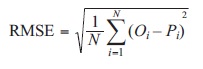(5)where N is the number of data points considered, and Oi and Pi are the observed and predicted values, respectively.