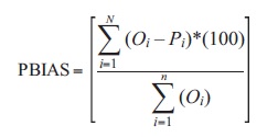 Some of the common parameters, including root mean square error (RMSE), mean error (ME) and percent bias (PBIAS) were used to check the performance of the applied models. These indices are valuable because they disclose errors in the units (or squared units) of the constituent of interest, which aids in the analysis of results (Moriasi et al., 2007). The PBIAS measures the average tendency of the simulated data to be larger or smaller than their observed counterparts; the optimal value is 0.0. Positive values indicate a model bias toward underestimation, whereas negative values indicate a bias toward overestimation (Gupta et al., 1999). These parameters were calculated as follows: