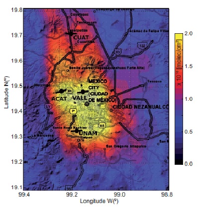 This project was funded by UNAM-DGAPA (IN109914) and by SEDEMA from the Gobierno del Distrito Federal, which are also thanked for making the air quality data available. J. Arellano would like to acknowledge CONACYT for the stipend which supported his Ph.D. work. Special thanks to A. Rodríguez from the mechanical workshop of the Centro de Ciencias de la Atmósfera for helping in the construction of the instruments. Thomas Danckaert, Caroline Fayt and Michel van Roozendael are thanked for making QDOAS available for the analysis.