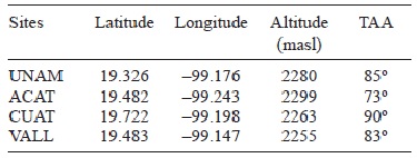 ACAT. The Acatlán station is located in the northwestern part of the city in a highly urbanized area with buildings surrounded by two parks, one of them to the south and the other to the north. The station is hosted by the campus of UNAM’s Facultad de Estudios Superiores (School of Graduate Studies). The region is highly urbanized and at 1 km distance towards the east there is a principal road with heavy vehicular load (FIMEVIC, 2001). The Naucalpan industrial park is less than 4 km away towards the southeast of the station.