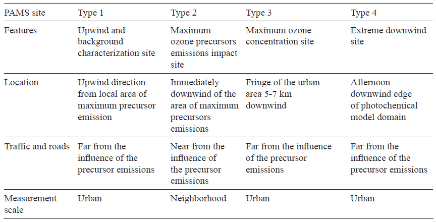 Once the sectors were delineated, the locations of the monitoring stations were identified in each sector in accordance with the characteristics of the four types of sites recommended by the US-EPA (1994), as summarized in Table I.