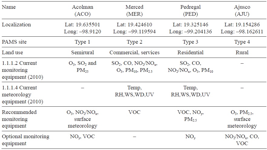 Both the US-EPA and Dermejian (2000) mention that the selection of sites is the most important task in the design of a network and that this process should result in the most representative location for the purposes of the site. As a result of our analysis, the proposed network for monitoring reactive ozone precursor compounds includes the Acolman (ACO), Merced (MER), Pedregal (PED) and Ajusco (AJU) SIMAT stations. Because the air quality monitoring at these stations is focused on characterization of the ozone problem within the MCMA, it is suggested that the selected stations be equipped for monitoring ozone, NOx, CO, and VOC.