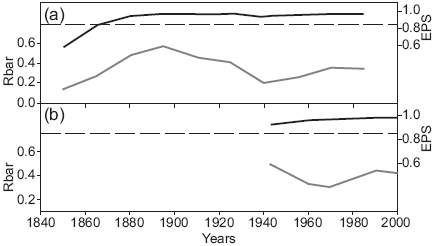 The EPS values greatly exceed the threshold of acceptance (0.85) in both classes (Table II and Fig. 2). The results of the Kruskal-Wallis test for the two age classes were significantly different ( p < 0.0001; H = 2378.4).