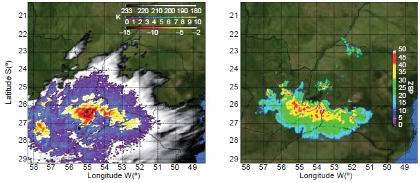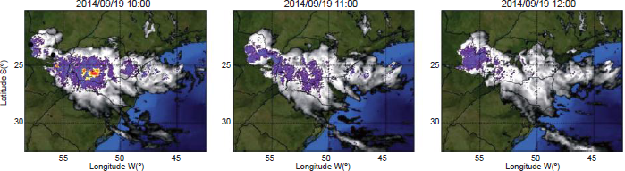 For validation purposes, a lightning dataset from the Vaisala Global Lightning Dataset GLD 360, and weather radar PPI images obtained with a 0.5º elevation angle were used. Radar data were collected by two different radar systems owned by the Sistema Meteorológico do Paraná (Paraná Meteorological System, SIMEPAR) (http://www.simepar.br) and installed in the Paraná state in southern Brazil.