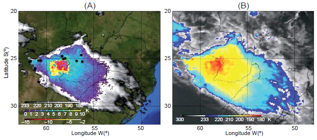 Although the contribution of radar systems to meteorology is clear, their efficiency and usage decrease with increasing range. In countries lacking satisfactory radar coverage or without a unified network (e.g., Brazil), other observations tools, among which satellites are the most important, remain to be the main data source to perform weather analysis. Satellite imagery allows extraction of valuable information of the atmosphere across a wide area and over short time intervals, and an automated analysis algorithm can more accurately identify deep convective storms of potential hazard.
