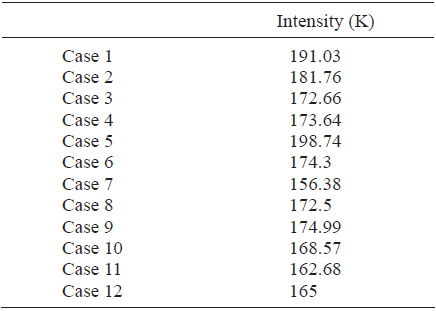 As an example, comparing the values for each parameter between cases 5 and 1, both temperature difference techniques agree that case 1 was more intense, but minima from IR 10.8 μm channel showed otherwise. A similar result is observed when comparing case 4 and case 8, but here the parameter that is not in consensus is the temperature difference IR – NWP. The comparison of the three parameters is more efficient than just analyzing the intensity of a storm by one parameter. This indicates that the analyses of the storms and the comparison between them would be better performed by a temperature index that indicates the intensity of the storm taking into account the three parameters. With that in mind, a simple function called “intensity” that combines the three parameters to indicate the most intense system was used. Table III shows the results of applying the intensity index to the values in Table II.