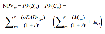 Using the EAD as input, we apply a CBA to determine whether flood protection by dike infrastructure is economically attractive, i.e. if the societal benefits of the project exceed the costs. To be economically attractive, the present value (PV) of the reduced expected annual damage (EADr), i.e. the reduction in flood risk of a strategy, should be higher than the PV of the investment and maintenance costs of building dike structures. Moreover, we estimate the economically optimal level of flood protection by the highest Net Present Value (NPV). The function for calculating the NPV is shown in equation 1.