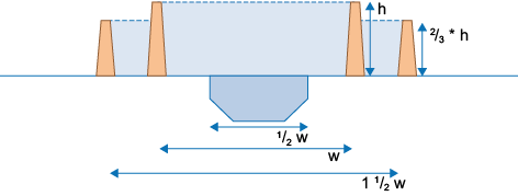 The height of the dikes for river protection is calculated based on the total flood volume remaining within the floodplain w, which is twice the channel width. As shown in Figure S1, this leads to a water height h. If possible, e.g. if the dikes are not located in urban areas, more tolerance of flood plain width is preferable to allow more room for the river, and to reduces the required dike-height. As the Tabasco rivers flow mainly through rural areas, we test the sensitivity by increasing the floodplain to three times the channel width. Since Tabasco is relatively flat, this means that dike heights are two third the height that would be required if the dikes were located directly on the river banks, as illustrated in Figure S1. Table SVII shows the results where we allow for a flood plain of triple the channel width. The economic optimum under an assumption of current climate is now a 100-yr protection standard. Under future climate conditions, the economic optimum remains a 250-yr protection standard.