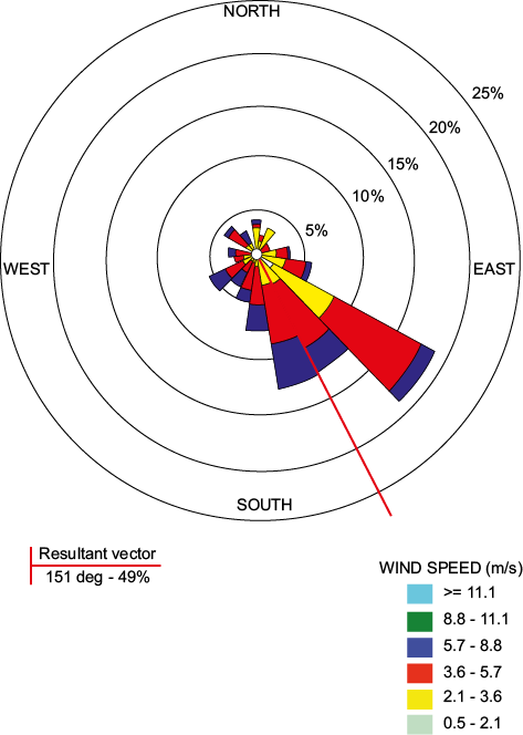 The locations of potential contamination sources were obtained from the Directorio Estadístico de Unidades Económicas (National Statistical Directory of Economic Units) (INEGI, 2016). We considered sources that were located within a 50-km (30-mi) radius of each study site, had more than 10 workers and involved a type of industrial and economic activity such as tobacco production, tanning and leather production, oil and carbon derived production, electronic devices production, and chemical processing. Wind speed and direction were obtained from automated meteorological stations established by Conagua (2016). This information was used to produce wind rose plots with the software WRPLOT View freeware version 7 to determine wind direction and velocity.