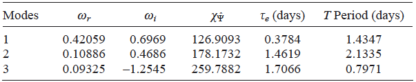 The main parameters of the first three most unstable modes are shown in Table I. The e-folding time τe =