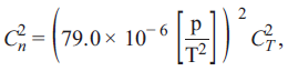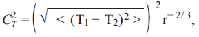 Sophisticated measuring equipment has been used to measure air temperature and pressure within the turbulent region. The propagation path length is represented by L and is equal to 2.52 m; the wavenumber k is the wavelength of a helium-neon laser at 532 nm; r describes the region between two reference points within the propagation path length, and T1 and T2 represent the temperatures at the two reference points. Measuring these observations in the laboratory allows one to determine, after Andrews and Phillips (1998),