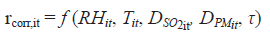 The effect of atmospheric variables and pollutants on the corrosion rate is analyzed by the dose-response function represented by Eq. (1):
