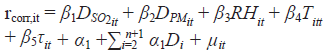 Eq. (3) assumes that the variables included in the model affect similarly carbon steel throughout the city. This equation is in accordance with the studies of Mikhailov, but also assumes that there is a statistically homogeneous behavior in the different sites of the region. For the above two equations, parameters β1, β2, β3, β4 and β5 measure the variables effects on the corrosion rate.