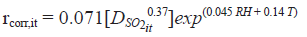All climatological parameters have a positive relationship with the metal corrosion rate according to this equation. The function proves possible nonlinear effects of independent variables on atmospheric corrosion (primarily SO2, RH and T).