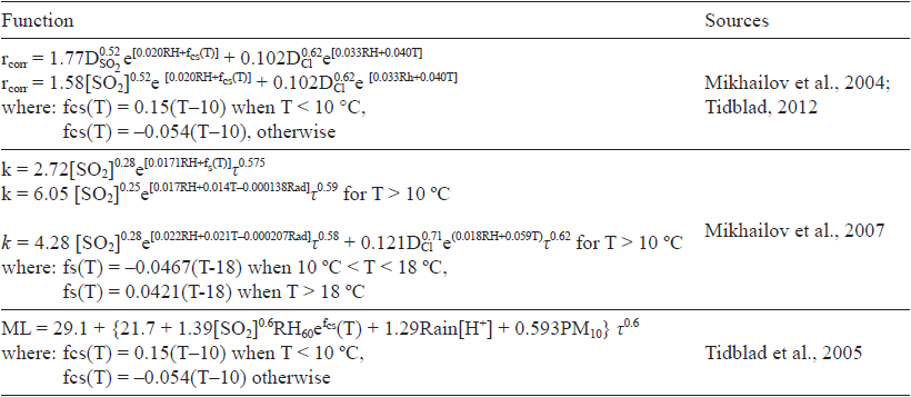 Mikhailov A. A., P. V. Strekalov and Y. M. Panchenko, 2007. Atmospheric corrosion in tropical and subtropical climate zones. 3: Modeling corrosion and dose-response function for structural metals. Prot. Met.+ 43, 619-627, doi:10.1134/s0033173207070028.