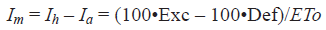 (4)Since the excess or lack of water generally occur in different seasons or periods, both should have a moisture index (Im), positively affecting the first one and negatively the second one, like this: