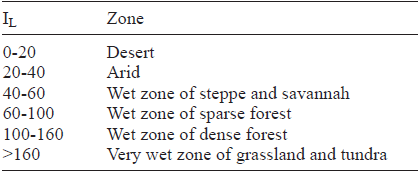 As mentioned above, the IL for the area selected was IL = 510.2/27.3 = 18.7, which classifies it as a desert zone according to Lang’s climatic zones classification (see Table I).