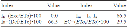 According to Thornthwaite, the humidity or aridity of a climate can be expressed in terms of the water excess index (Ih) and the aridity index (Ia), for which the following equations are used: