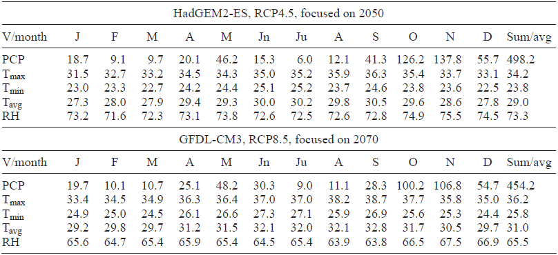 Table V shows the adjusted baselines, namely future scenarios for Tmax, Tavg, Tmin, PCP and RH.