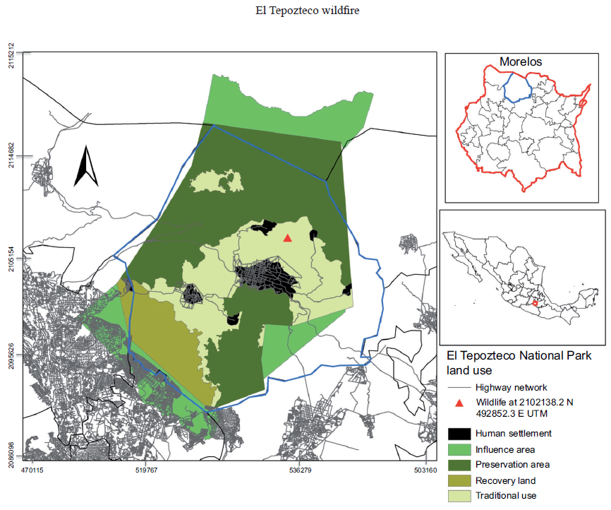 It is necessary to prioritize prevention, monitoring, and mitigation measures of human-induced wildfires in Mexico. It is recommended to increase the coverage of the monitoring network of the government of Morelos to include the Tepoztlán municipality, due to the high frequency of wildfires and the growing urbanization in the zone.