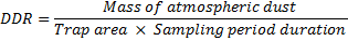 Atmospheric dust samples trapped on glass trays were collected and transferred to the laboratory in plastic sealed containers. At the end of each sampling period, glass trays were washed with distilled water.DDR was calculated according to Eq. 1 (Hojati et al., 2012):